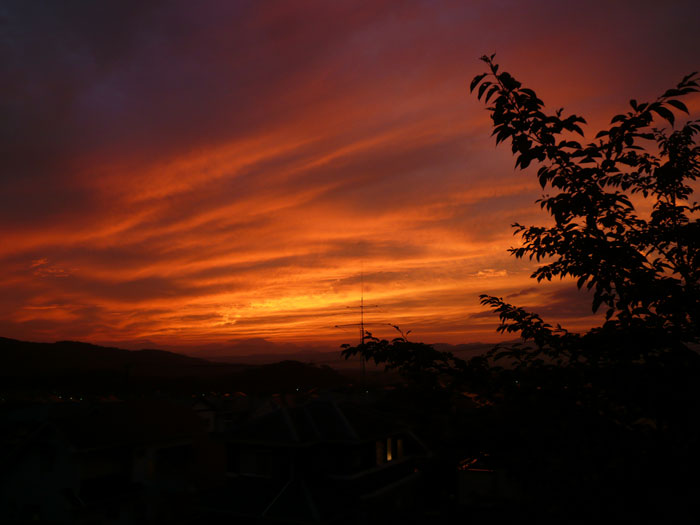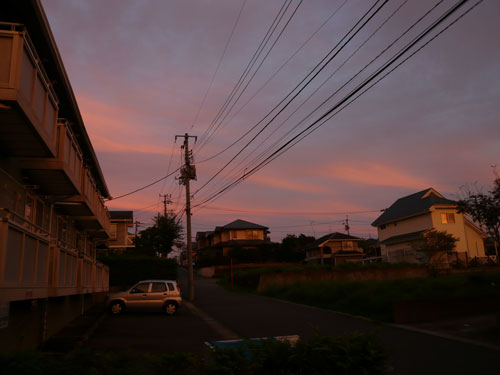 あ、あと「雲が紫色、日が赤いときは雨」というのもありまして、実際今日の夕日はこれでした。